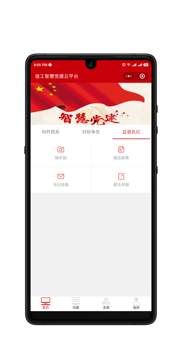 平臺一期建設(shè)有“標(biāo)桿院系”、“對標(biāo)爭先”、“監(jiān)督執(zhí)紀(jì)”三大板塊,只記錄、不積分。其中“標(biāo)桿院系”展示信息工程學(xué)院黨總支新時(shí)代高校黨建“雙創(chuàng)”工作重點(diǎn)任務(wù)實(shí)施情況,將“雙帶頭人”工作室建設(shè)、支部對標(biāo)爭先創(chuàng)建、“六個(gè)一”工程、校地共建等培育創(chuàng)建項(xiàng)目實(shí)施情況寫實(shí)記錄;“對標(biāo)爭先”板塊展示各支部爭先創(chuàng)建活動(dòng),支部之間可以對標(biāo)、展示、促進(jìn);“監(jiān)督執(zhí)紀(jì)”板塊則包含了“隨手拍”、“匿名舉報(bào)”、“建言獻(xiàn)策”,加強(qiáng)廉政監(jiān)督工作的力度,造就忠誠干凈擔(dān)當(dāng)?shù)慕處燑h員隊(duì)伍。平臺還可以記錄黨員、入黨積極分子學(xué)習(xí)學(xué)時(shí)、實(shí)踐學(xué)時(shí)、志愿服務(wù)、考試記錄。