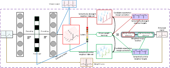 針對(duì)信號(hào)降噪采用小波或?yàn)V波變換導(dǎo)致信號(hào)的低頻波段特征丟失的問(wèn)題,創(chuàng)新性提出語(yǔ)義驅(qū)動(dòng)低頻信號(hào)特征強(qiáng)化模型,克服低頻信號(hào)受微小擾動(dòng)導(dǎo)致關(guān)鍵靶點(diǎn)定位失敗難題;提出轉(zhuǎn)換增強(qiáng)的信號(hào)哈希表征模型,有效解決信號(hào)的時(shí)域能量積累,迭代相互干擾和抑制,時(shí)頻域特征的并發(fā)沖突等問(wèn)題。針對(duì)信號(hào)伴隨局部鄰域知識(shí)交互,相互抑制,序列特性時(shí)間跨度長(zhǎng)導(dǎo)致語(yǔ)義理解困難等問(wèn)題,創(chuàng)新性地設(shè)計(jì)帶有補(bǔ)丁嵌入的耦合哈希網(wǎng)絡(luò)拓?fù)洌瑥亩嗑S角度抓取兼顧時(shí)-空-頻域的特征,增強(qiáng)耦合哈希網(wǎng)絡(luò)編碼與原始信號(hào)之間的關(guān)聯(lián)度,有效地解決了信號(hào)交疊信息的解耦,并保持信號(hào)的保真度和時(shí)空順序。目前該信號(hào)處理技術(shù)已經(jīng)成功地應(yīng)用于心電信號(hào)上,相比傳統(tǒng)方法可有效抑制類似QRS的運(yùn)動(dòng)偽影噪聲,并去除其他混合噪聲。目前該方向在研項(xiàng)目包括國(guó)家自然科學(xué)基金“基于耦合深度哈希的心電低頻信號(hào)靈敏檢測(cè)研究”、山東省自然科學(xué)基金“基于ECG弱特征凸顯的語(yǔ)義哈希表示研究”。目前已發(fā)表高水平科研論文30余篇,申請(qǐng)受理發(fā)明專利4項(xiàng),軟件著作權(quán)20余項(xiàng)。